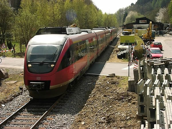 planmäßiger Reisezug wieder den BÜ Gimborner Straße im