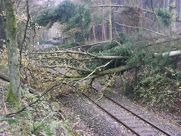 In den ersten Novembertagen 2002 waren wieder einige Gleisblockaden durch umgestürzte Bäume auf der SKB zu verzeichnen